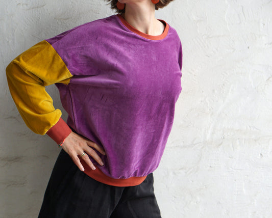 Nicky Sweater Colourblock in den Farben lila/gelb/terracotta von Fräulein Prusselise