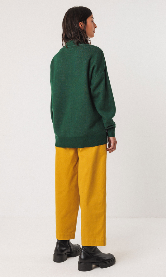 Cardigan Batirtze im Jacquard Strick Comic in der Hauptfarbe Grün mit Farbakzenten von SKFK