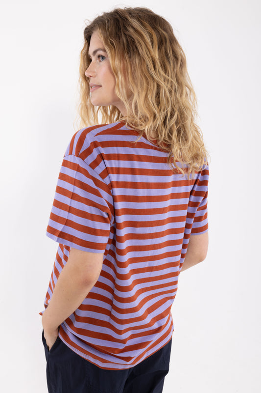 Shirt Danebasic kurzarm in den Farben Bordeau/lila gestreift von Danefae