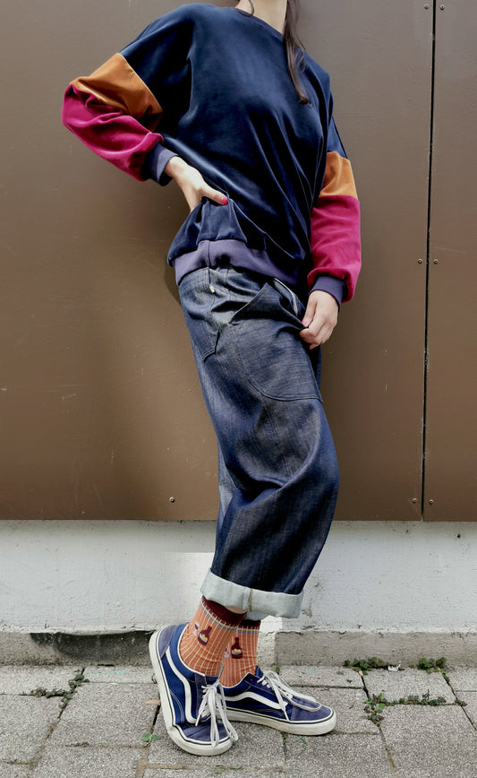 Bequeme Hose Hailey mit Herzchen-Jacquard Muster in rot und blau von Lalamour