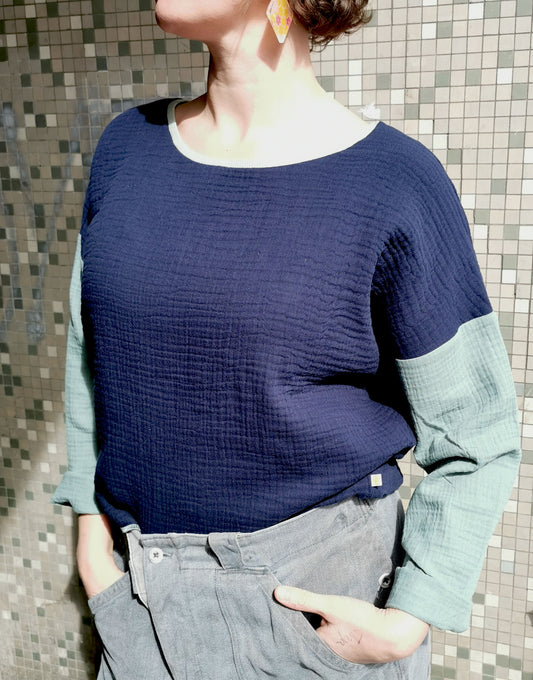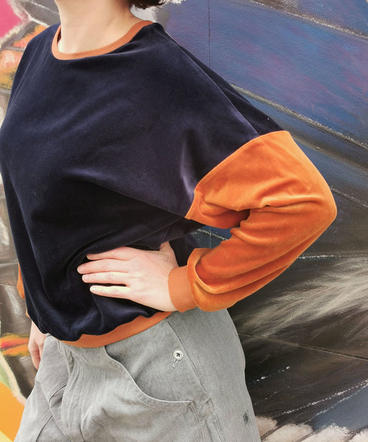 Nicky Sweater Colourblock in den Farben Dunkelblau/Zimt von Fräulein Prusselise