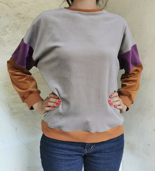 Nicky Sweater Colourblock in den Farben grau/lila/zimt von Fräulein Prusselise