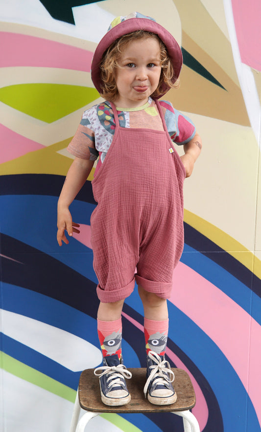 Latzhose aus Musselin mit Bindeträgern altrosé von Fäulein Prusselise