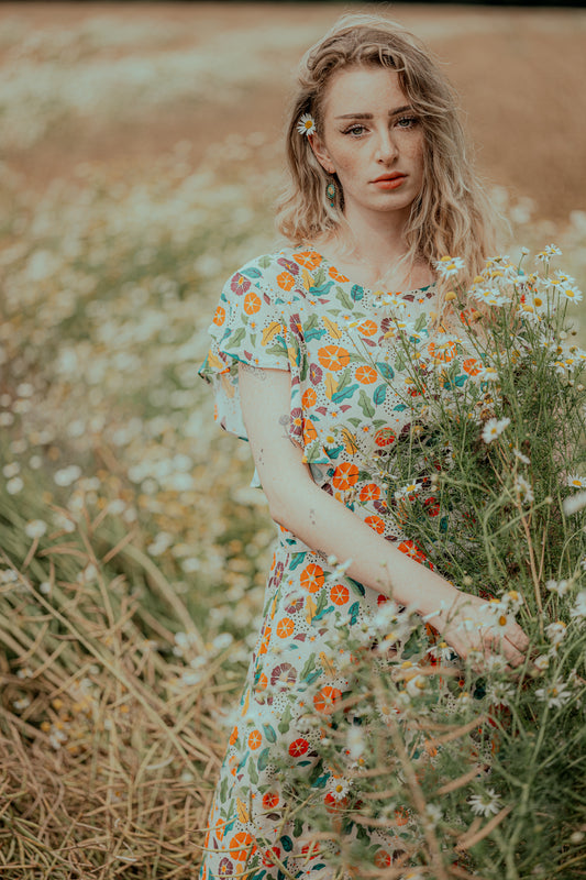 Kleid Willow mit Blüten und Tupfen in Retromix-Farben von Lalamour