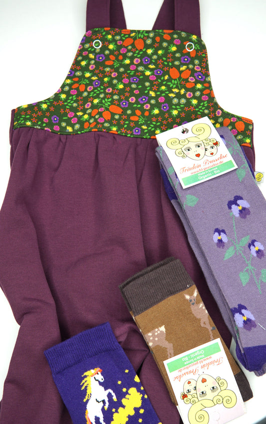 Latzfratz dungarees with millefleurs olive and mauve by Fräulein Prusselise