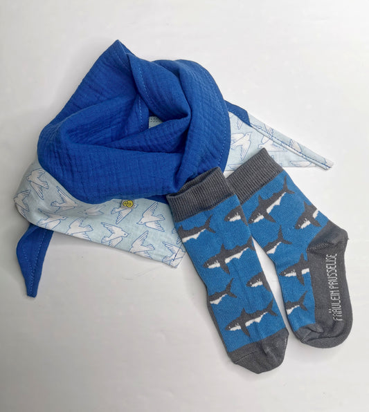 Welcome Baby Set - Socke mit Tuch Hai von Fräulein Prusselise