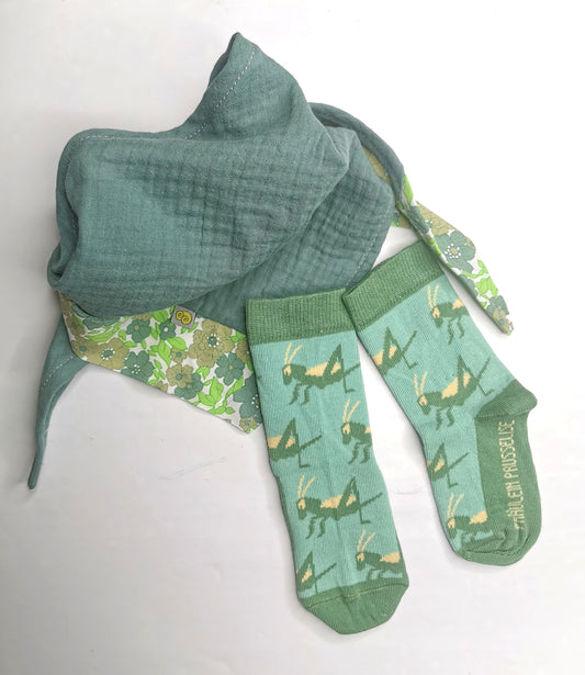 Welcome Baby Set - Socke mit Tuch Grashüpfer von Fräulein Prusselise