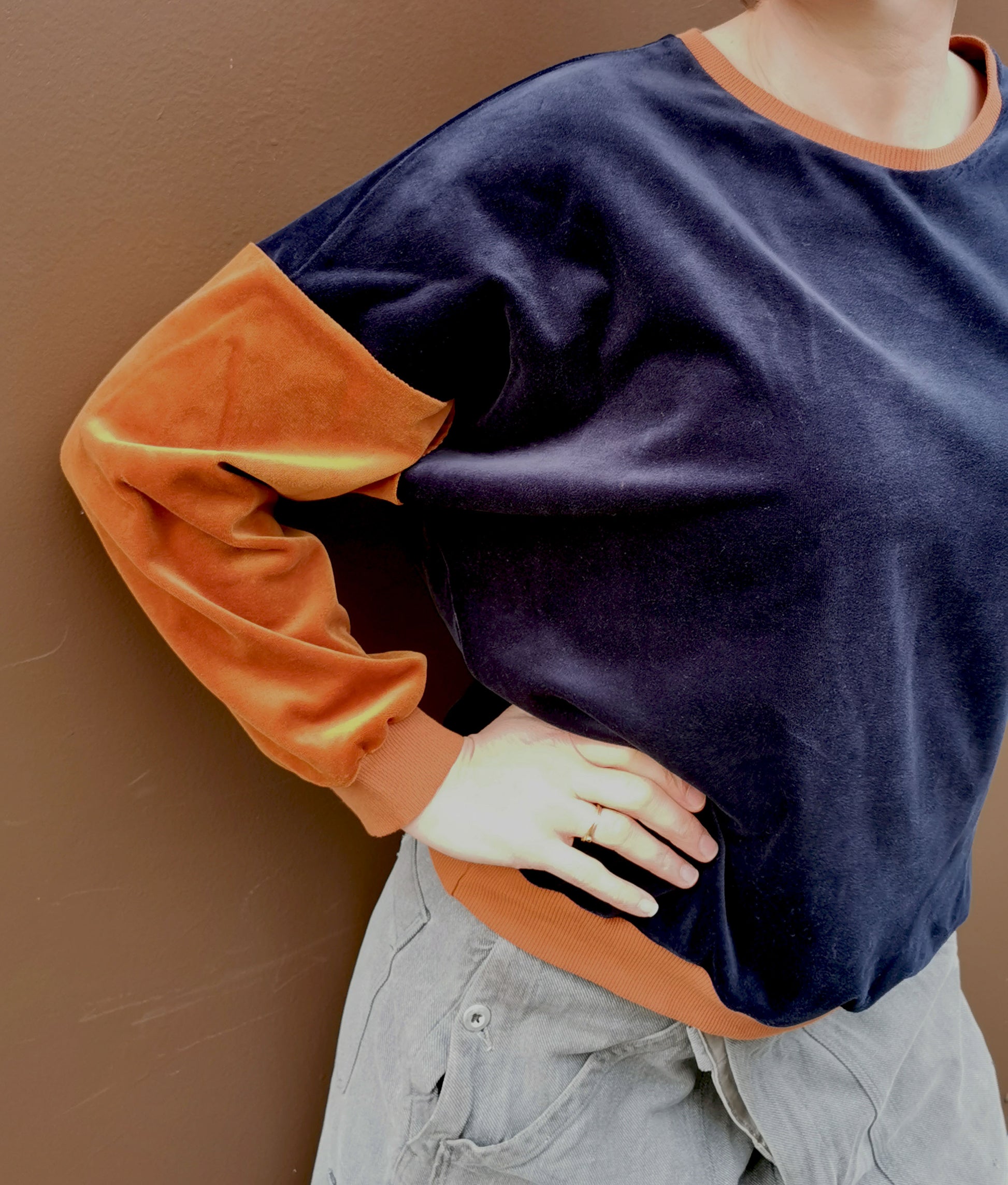 Nicky Sweater Colourblock in den Farben Dunkelblau/Zimt von Fräulein Prusselise