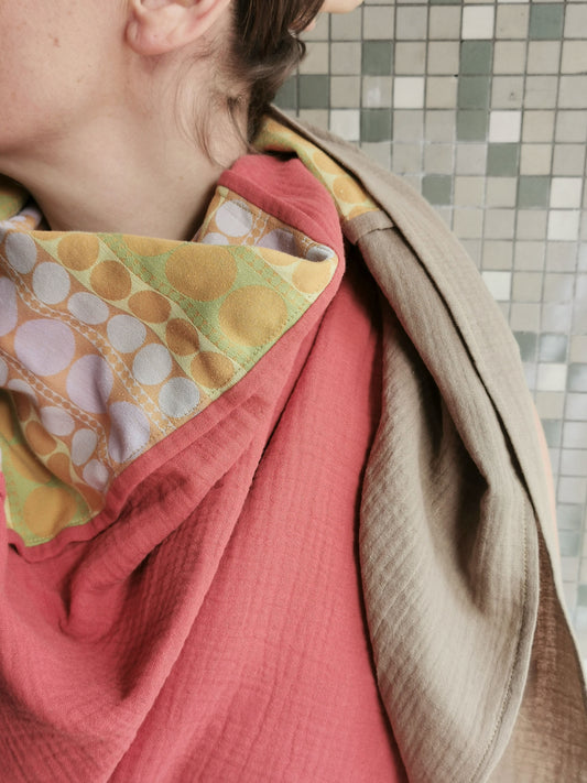 Großes Musselintuch Erdtöne mit retro Damast von Fräulein Prusselise